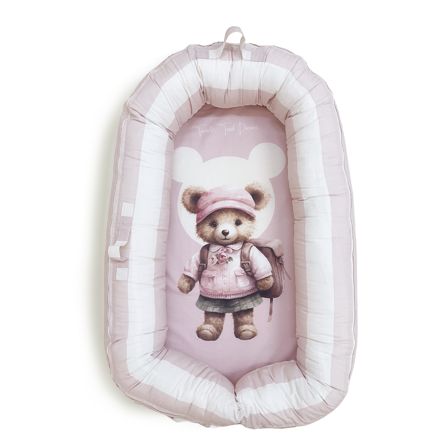 Udobno, bezbedno i neodoljivo slatko – gnezdo za bebe sa motivom mede idealno je mesto za prve mesece vaše bebe. Dostupno u dve nežne boje – mint i roze – savršeno se uklapa u svaku dečiju sobu, bilo da je namenjeno dečaku ili devojčici.