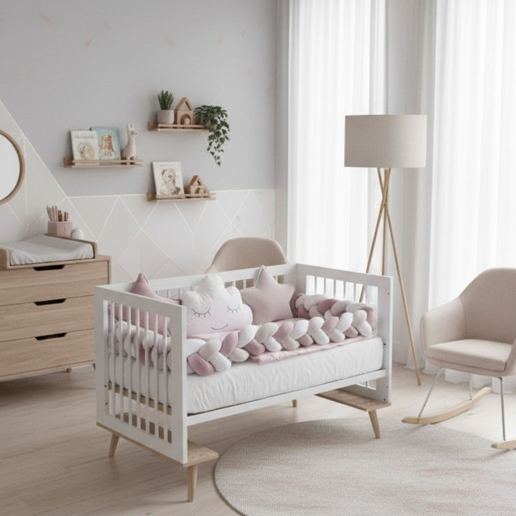 Preslatki dečiji kompleti iz kolekcije Bambino su izrađeni od pamučnog materijala sa kombinacijama koje su obožavane – pletenica + dekorativni jastučići oblak i zvezda, tako da verujemo da nećete imati dileme kod izbora. SADRŽAJ KOMPLETA: Komplet sadrži: ogradicu pletenicu dimenzije 240x15cm, 2x jastuče zvezda 40x40cm, jastuče oblak 50x40cm, jastuče 30x40cm, jorgan 90x60cm, donji čaršav dimenzije 60x120cm SIROVINSKI SASTAV: pletenica, jastučići zvezda i oblak: pamučni pliš (80%pamuk, 20%poliester), donji čaršav, jastuče i jorgan: navlaka 100% pamuk; punilo: 100% poliester