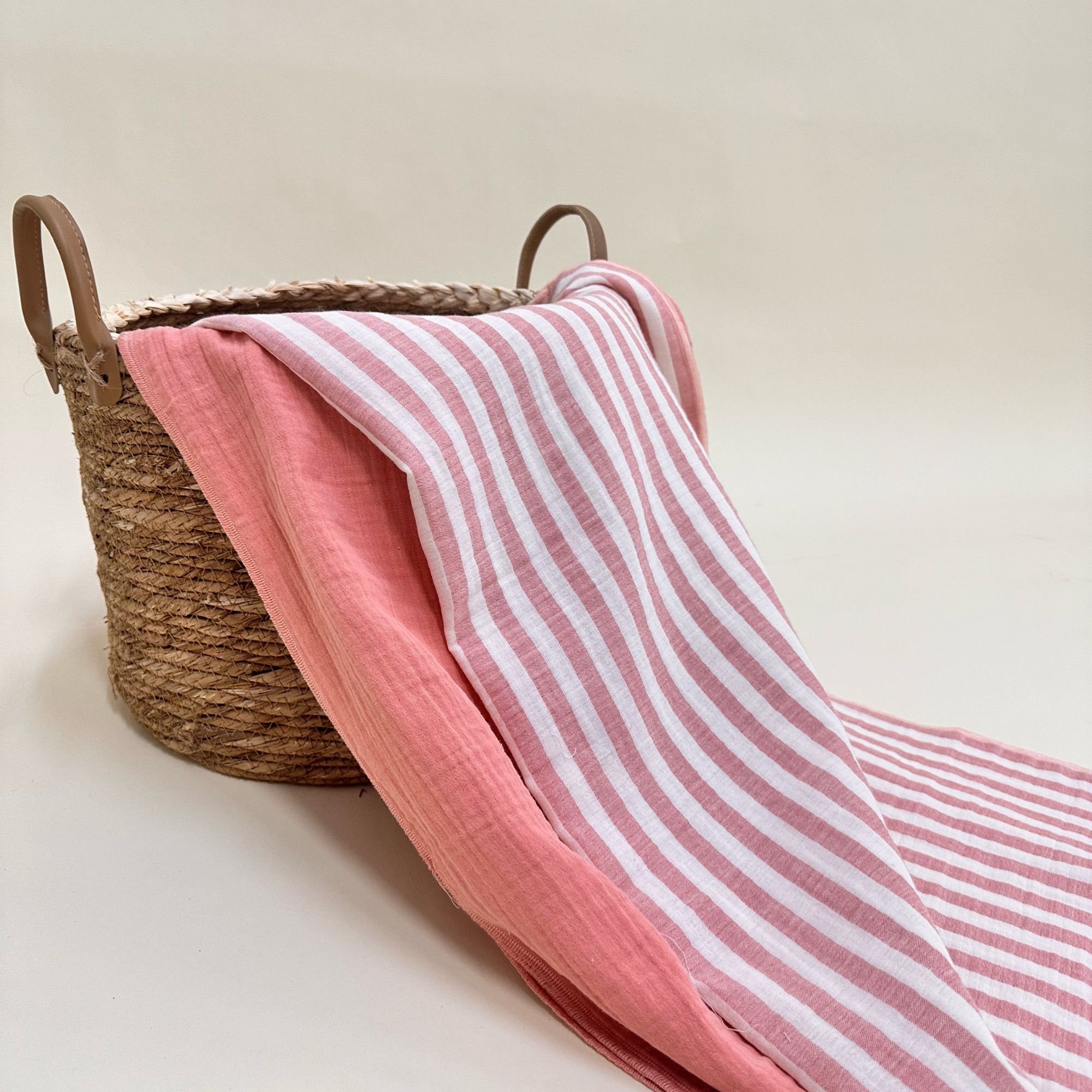 Višenamenska pelena od muslina – Muslin pelene za bebe su odličan izbor za roditelje koji traže proizvod koji je mekan, prozračan, višenamenski i dugotrajan. Bez obzira da li ih koristite kao pelene, pokrivače ili zaštitu od sunca, ove pelene pružaju bebi udobnost i zaštitu, a roditeljima olakšavaju svakodnevnu brigu. Zbog svoje svestranosti, ekološke prihvatljivosti i estetskog izgleda, muslin pelene su postale omiljeni proizvod u mnogim domovima širom sveta. Dimenzije: 80x80cm, 2 komada u pakovanju