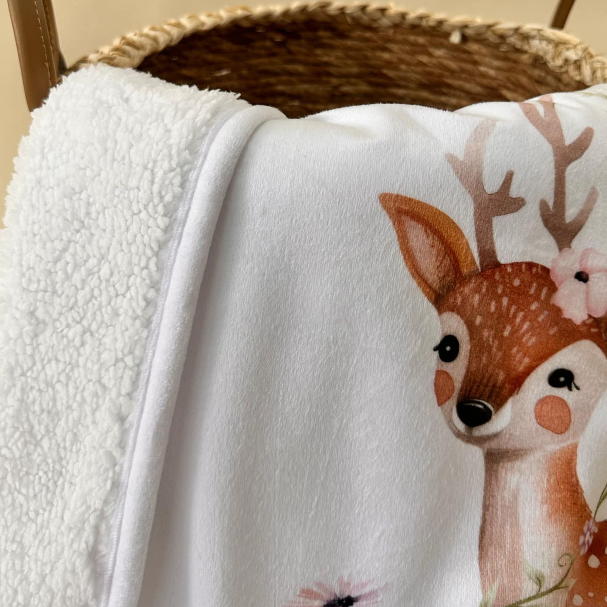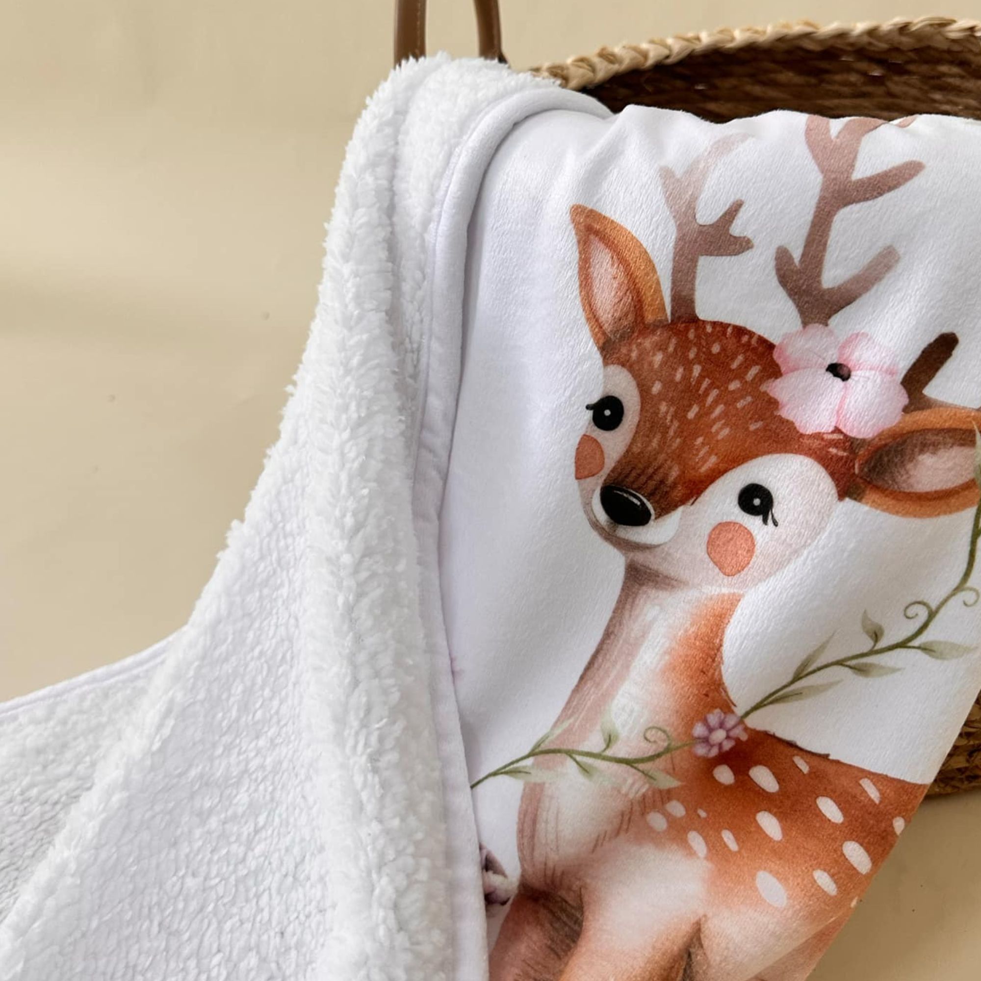 Ovaj prelep bebi pokrivač pruža savršen spoj udobnosti i stila za vašu bebu. Sa jedne strane, izrađen je od izuzetno mekanog veštačkog krzna, koji je nežan za bebinu kožu i pruža prijatnu toplinu, dok je sa druge strane prekriven udobnim plišom sa šarmantnim dezenom bambija, koji dodaje zabavan i nežan izgled. Idealno za umotavanje ili kao dodatak u krevetiću, ovaj pokrivač je savršen za hladne dane, a uz to će uneti toplinu i radost u svakodnevne trenutke.